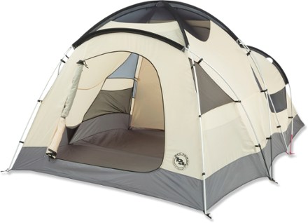 The big agnes flying diamond 8 deluxe car camping base camp tent will withstand a winter snowfall and features a main area that sleeps 6 and a smaller area that sleeps 2.